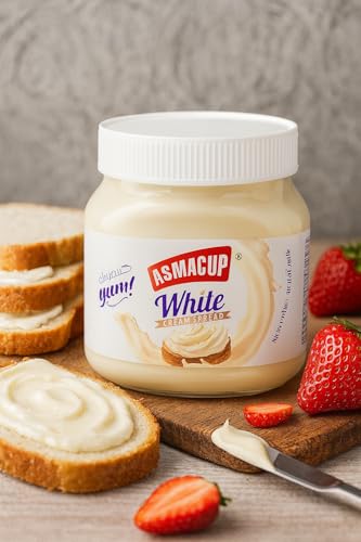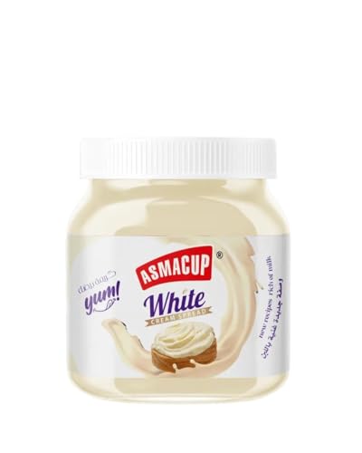 asmacup - كريمة شوكولاتة بيضاء سبريد بنكهة شوكولاتة بيضاء ناعمة وكريمية خالية من زيت النخيل مثالية للفطائر والكريب والحلويات والخبز والدهن - 350 جم