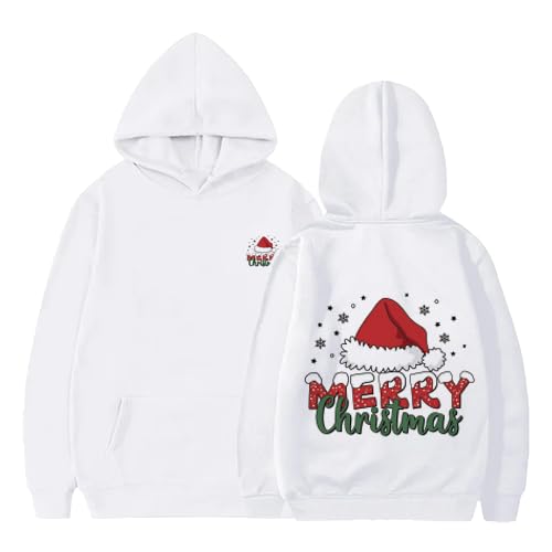 Generic - هودي ابيض للكريسماس مع تصميم قبعة سانتا، بلوفر شتوي للعطلات الاحتفالية، طباعة جرافيك مقاس (S)