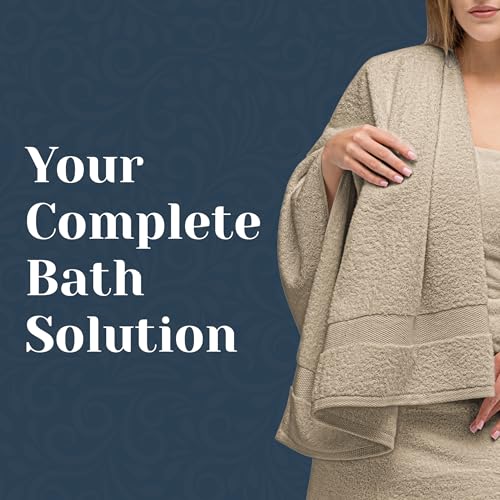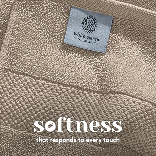 White Classic - مجموعة فوط حمام من القطن الممشط من وايت كلاسيك، مجموعة من 8 قطع | 2 فوطة حمام | 2 فوطة يد | 4 فوط للتنظيف | بيج رمادي