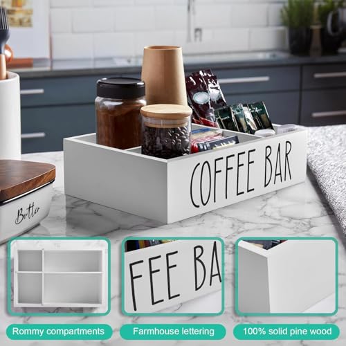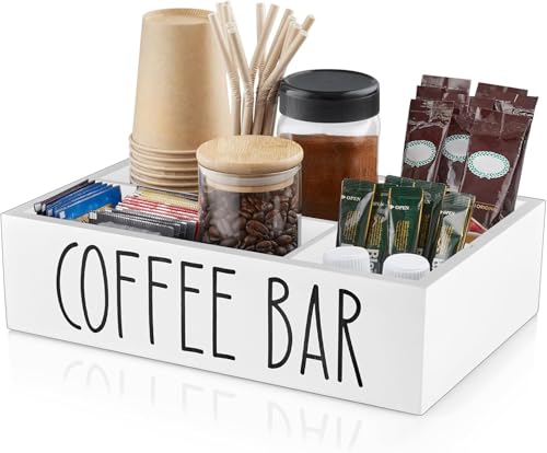 Generic - منظم لمحطة القهوة مصنوع من الخشب باللون الأبيض، يحتوي على فواصل قابلة للإزالة وأقسام مخصصة لكبسولات القهوة وأكياس السكر والشاي والاكسسوارات وهو مناسب لتزيين الأسطح والبارات