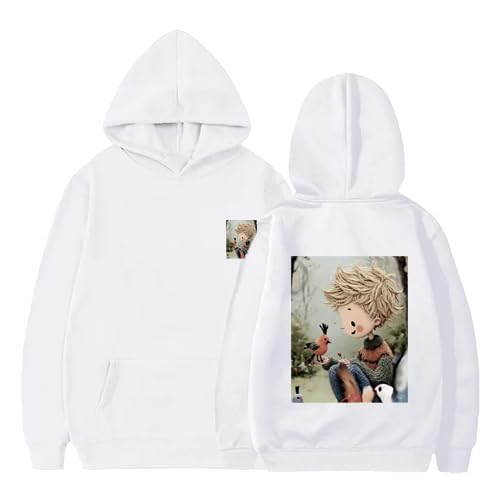 Generic - هودي قطن ابيض مع طباعة شخصية انيمي، كم طويل مقاس (L)