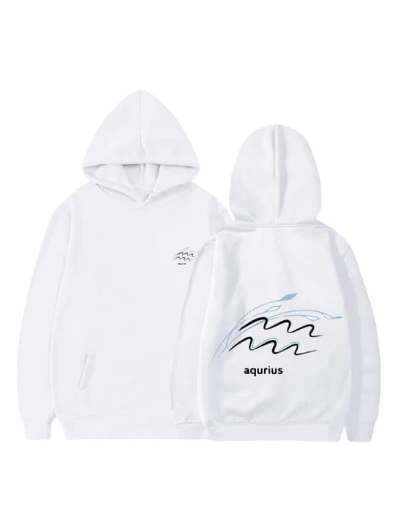 Generic - هودي قطن ابيض مع شعار برج الدلو الاسود مقاس (S)