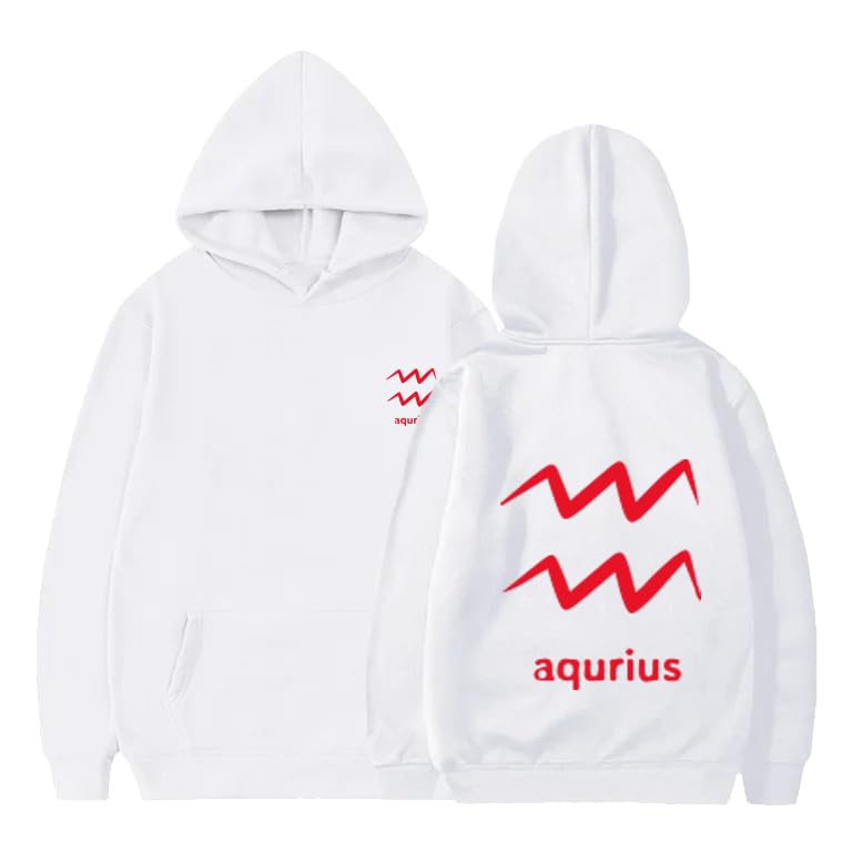 Generic - هودي قطن ابيض مع شعار اكيوريوس زودياك احمر مقاس (XL)