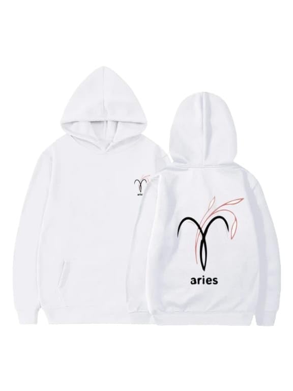 Generic - هودي قطن ابيض مع شعار برج الحمل الاسود مقاس (9-12 سنة)