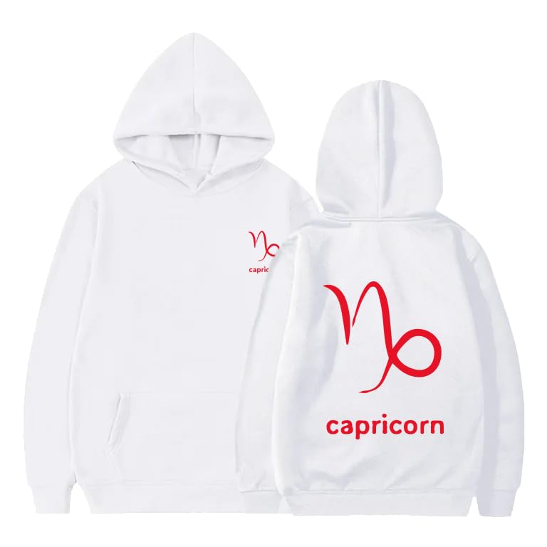 Generic - هودي قطن ابيض مع شعار برج الجدي الاحمر مقاس (M)