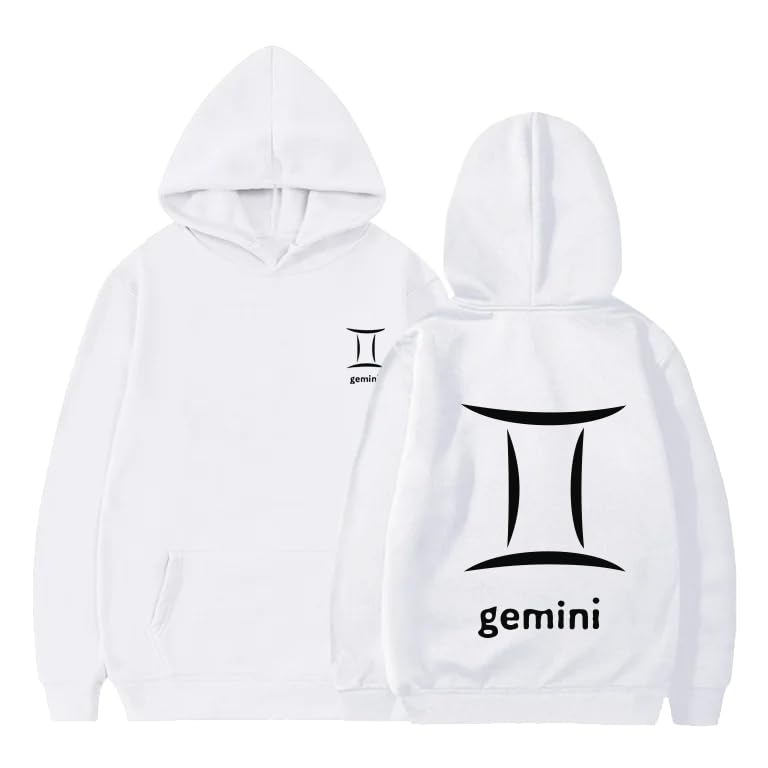 Generic - هودي قطن ابيض مع شعار برج الجوزاء الاسود مقاس (S)