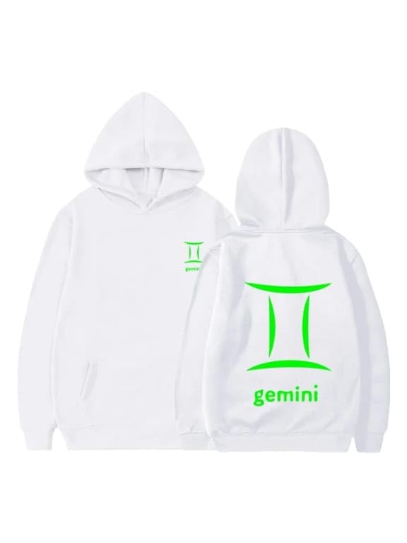 Generic - هودي قطن ابيض مع شعار برج الجوزاء بلون اخضر ليموني مقاس (M)