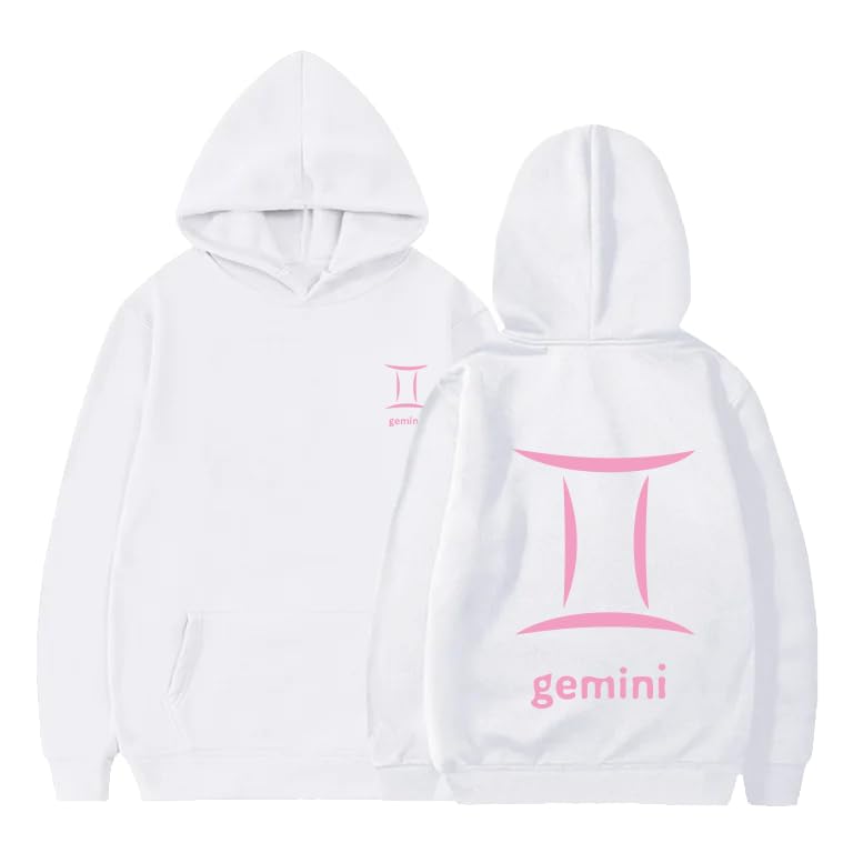 Generic - هودي قطن ابيض مع شعار برج الجوزاء باللون الزهري مقاس (L)