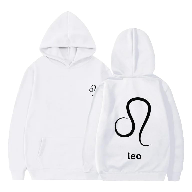 Generic - هودي قطن ابيض مع شعار ليو زودياك اسود مقاس (S)