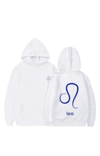 Generic - هودي قطن ابيض مع شعار ليو زودياك ازرق مقاس (S)