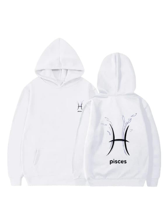 Generic - هودي قطن ابيض مع شعار برج الحوت الاسود مقاس (2XL)