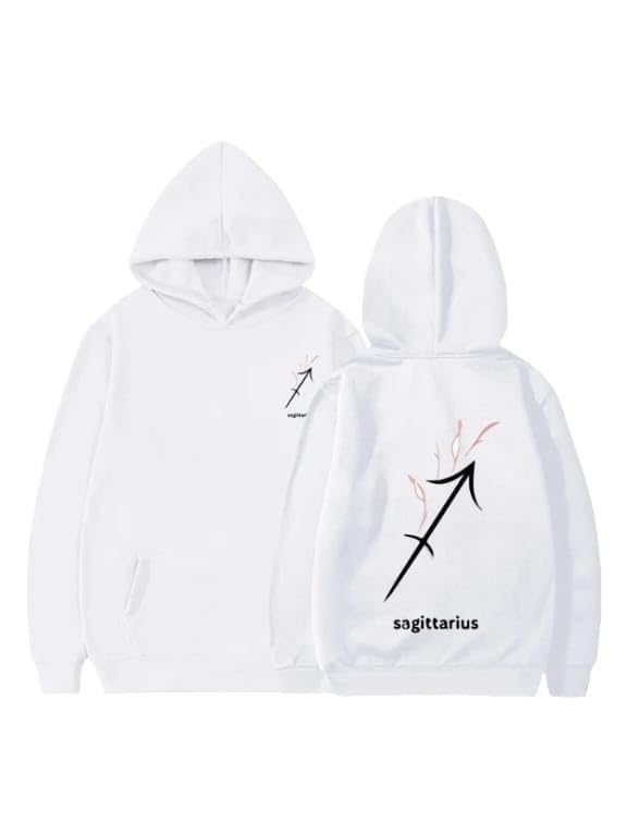 Generic - هودي قطن ابيض مع شعار برج القوس الاسود مقاس (9-12 سنة)