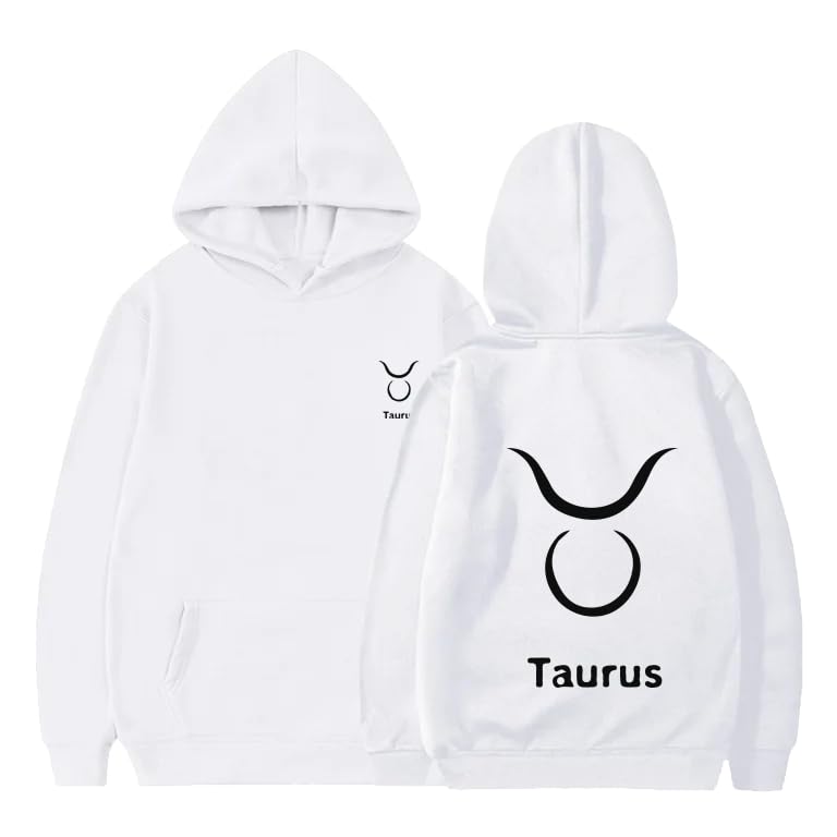 Generic - هودي قطن ابيض مع شعار برج الثور الاسود مقاس (2XL)