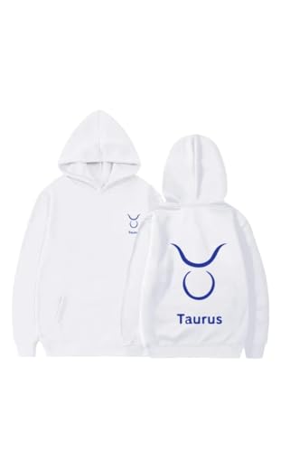 Generic - هودي قطن ابيض مع شعار برج الثور الازرق مقاس (M)