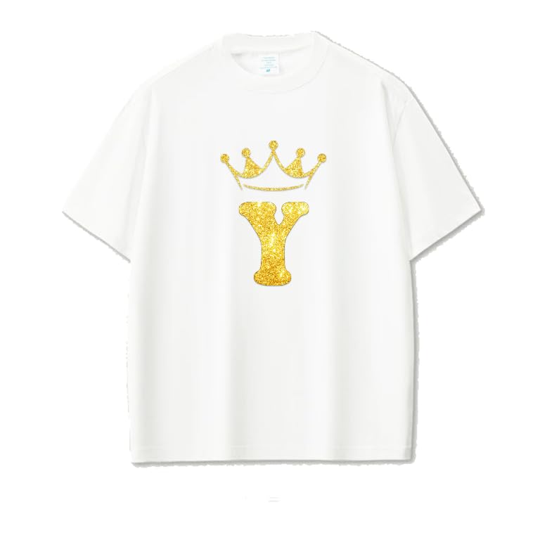 Generic - تيشرت قطن ابيض كاجوال مطبوع عليه حروف تاج (Y) مقاس (2XL)