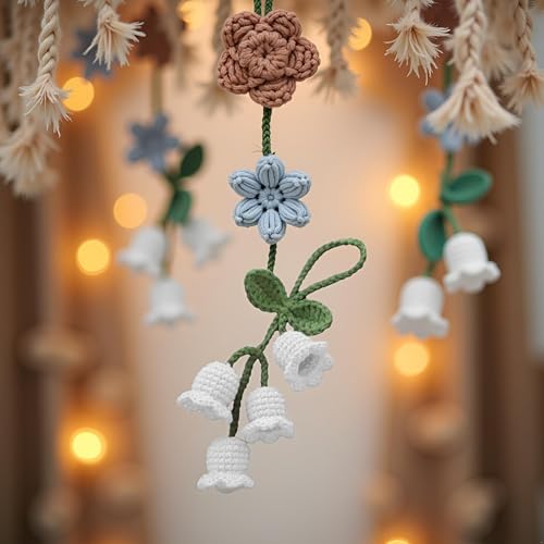 Junfamilee - سلسلة مفاتيح بيضاء ابداعية محبوكة على شكل زهرة الاوركيد على شكل زهرة كروشيه لمستلزمات مفاتيح السيارة، سلاسل مفاتيح مكرامية صغيرة بوهو مكرمية او شنطة او محفظة جوال، سلاسل مفاتيح للسيارة، اكسسوارات