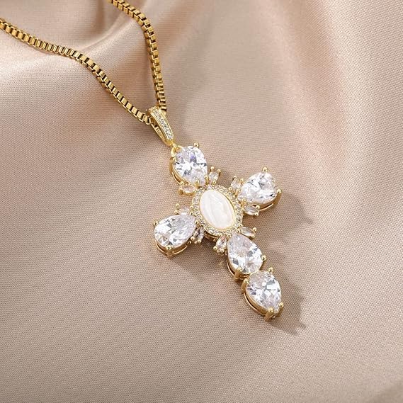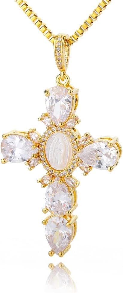fashion mania - عقد صليب مرصع بكريستال زركون ابيض للنساء، قلادة شوكر بدلاية مريم العذراء، قلادة كريستال قوطية عتيقة، قلادة جرونج