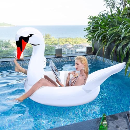 - متعة سباحة صيفية مثالية يمكنك الاستمتاع بالطفو في حمام السباحة أو على الشاطئ أو على البحيرة أو على النهر طوال الصيف. هذا ديكور مناسب لحمام السباحة الخاص بك. ستحب أنت وعائلتك الاسترخاء على حلقة السباحة الجميلة القابلة للنفخ المصممة على شكل بجعة. استمتع بجمال الصيف.