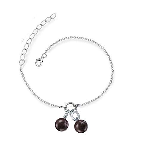 Other - سوار على شكل سلسلة مطلية بالذهب الأبيض مع خرز بني للنساء