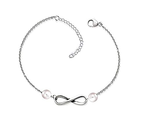 Other - سلسلة مطلية بالذهب الابيض مع حلية انفينيتي وخلخال خرز لؤلؤ للنساء