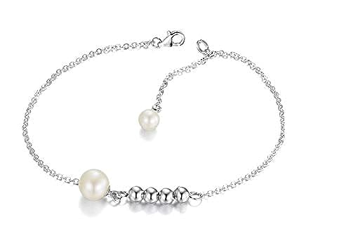 Other - سلسال مطلي بالذهب الابيض مع اسوارة خرز من الفضة و اللؤلؤ للنساء