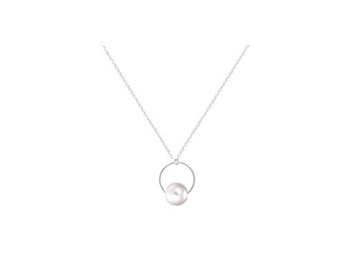 Other - سلسال بقلادة متدلية دائرية مطلية بالذهب الابيض مع خرز للنساء، ابيض