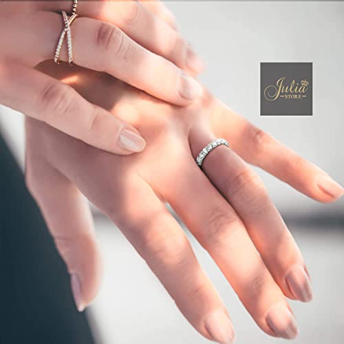 Generic - خاتم حب مطلي بالذهب الابيض ومرصع بزركونيا مكعب| الخطوبة قابل للتكديس بقصة الاميرة 3 ملم للنساء من جوليا ستور , معدن زركونيا مكعب ، 8