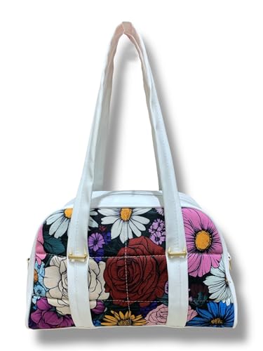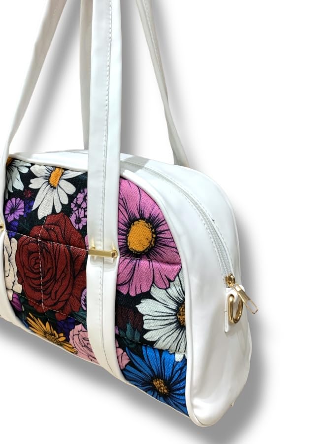Generic - شنطة يد وكروس بيضاء بنقشة ورود مبهجة وطابع ربيعي أنيق