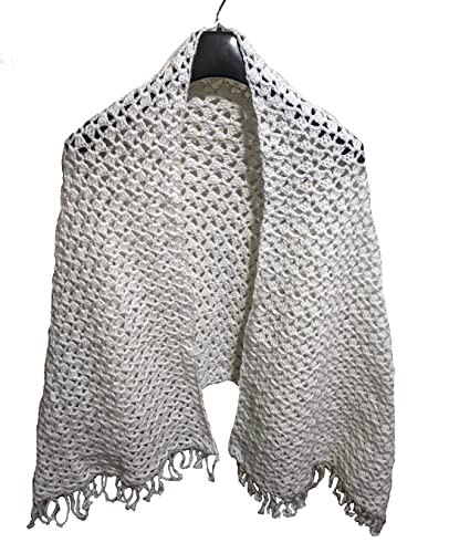 Generic - شال كروشيه ابيض مصنوع يدويا للنساء 180 × 80 سم شال ابيض هاندميد كروشيه للنساء