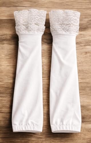 Generic - أكمام ذراع للحجاب بحواف مزينة بالدانتيل، اكسسوار عصري محتشم بتصميم أنيق، أبيض