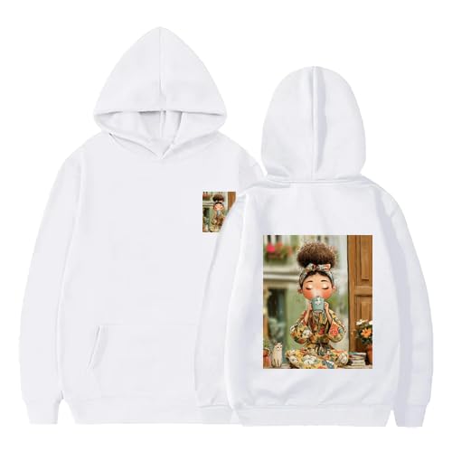 Generic - سويت شيرت بلوفر بغطاء رأس مع طباعة صورة من الأمام والخلف، لون أبيض، مقاس (3-6 سنوات)