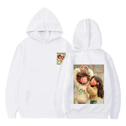 Generic - سويت شيرت بغطاء رأس للرجال والنساء بتصميم مزود بجيب أمامي ومزين بطبعة كرتونية بنمط زوجين، أبيض، ميديوم M