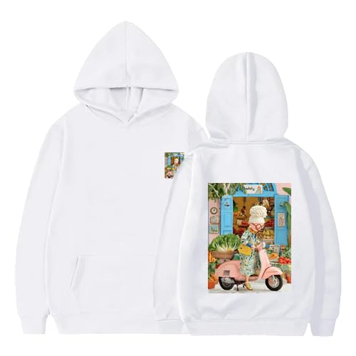 Generic - سويت شيرت بغطاء رأس ابيض بطباعة سكوتر كرتونية، تصميم امامي وخلفي، سويت شيرت بلوفر مقاس (XL)