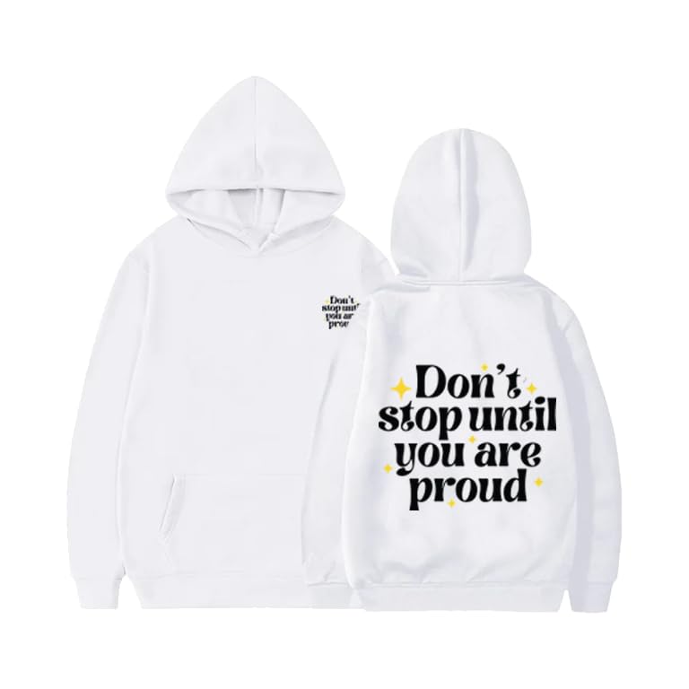 Generic - هودي ابيض مع اقتباس تحفيزي, Don't Stop Until You Are Proud, سويت شيرت بلوفر مقاس (M)