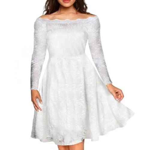 Generic - فستان مصنوع من الدانتيل للنساء، باللون الأبيض