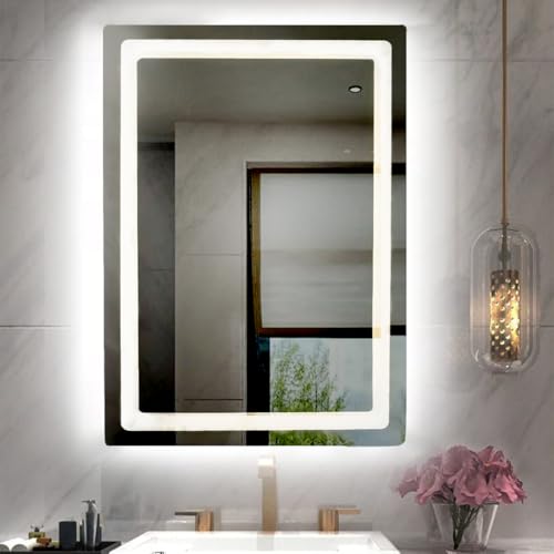 Generic - مراة اضاءة LED بيضاء 50 × 70 سم - مراة عصرية مضيئة للحمام والتزيين مع اضاءة بيضاء ساطعة، مراة ديكور مثبتة على الحائط للمكياج والعناية الشخصية والاستخدام اليومي