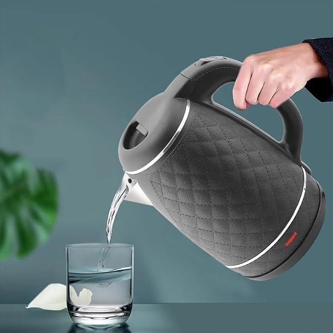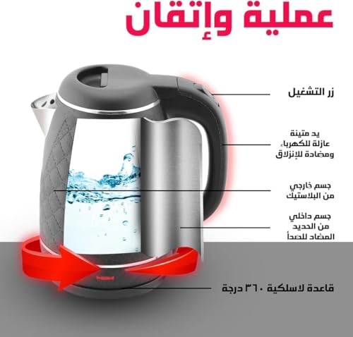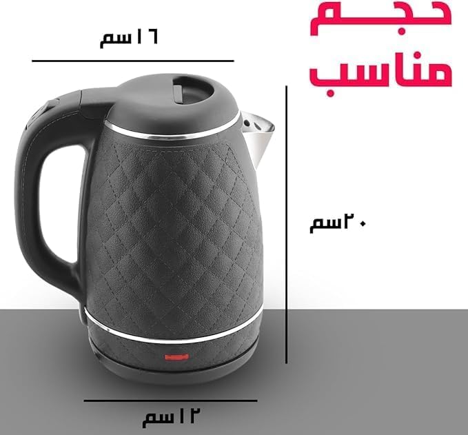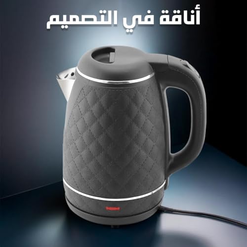 Generic - غلاية مياه كهربائية 1.8 لتر من وايت لايف مصنوعة من الفولاذ المقاوم للصدأ بقدرة 1500 وات تتميز بالغليان السريع وتصميم ممتاز مزودة بمقبض معزول حراريا أمنة جدا فصل تلقائى بعد الغليان لون أسود ضمان عام