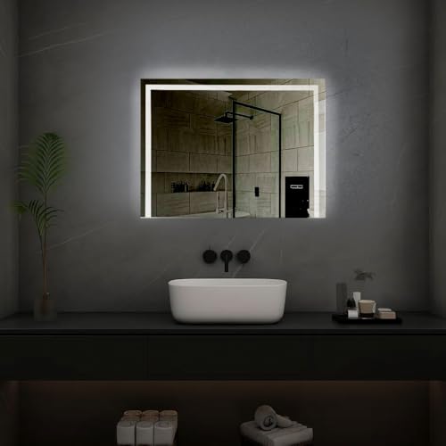- تصميم بإضاءة خلفية LED: مرآة حمام حديثة بدون إطار تتميز بإضاءة LED موفرة للطاقة حول المحيط توفر إضاءة ساطعة ومتساوية للعناية بوضع المكياج