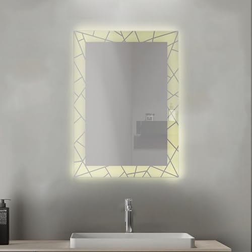 - تصميم هندسي عصري: يتميز بإطار بنمط هندسي أنيق مع إضاءة خلفية LED مدمجة تخلق توهجًا محيطًا مذهلاً، مما يضيف لمسة عصرية ومتطورة إلى أي حمام أو غرفة نوم أو منطقة ملابس
