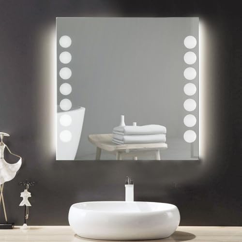Generic - مراة تعمل باللمس باضاءة بيضاء 80×80 سم - مراة فانيتي LED عصرية مع تحكم باللمس، اضاءة بيضاء قابلة للتعديل للحمام وغرفة النوم والمكياج والتزيين وديكور المنزل