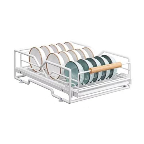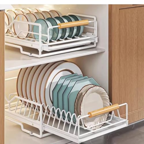 Generic - رف تنظيم الأطباق من المعدن الأبيض، حامل أدوات المائدة مع مقبض خشبي، منظم مطبخ قابل للتعديل