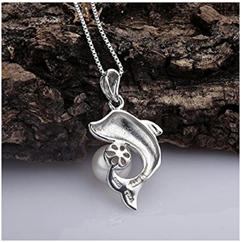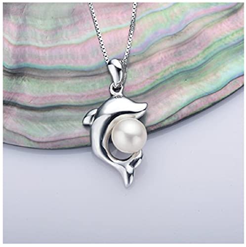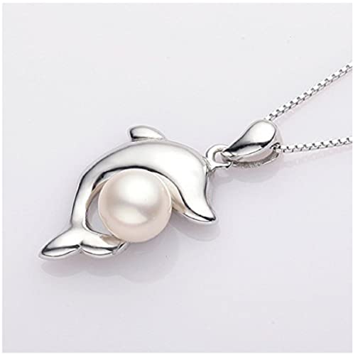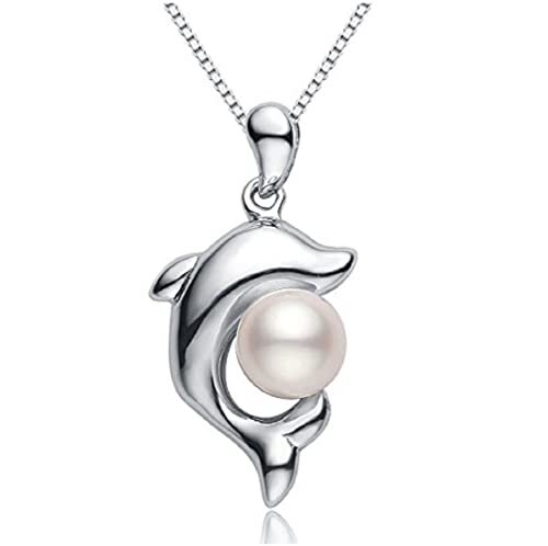 Generic - سلسلة من الفضة واللؤلؤ الطبيعي على شكل دولفين صغيرة ابيض اللون، للنساء