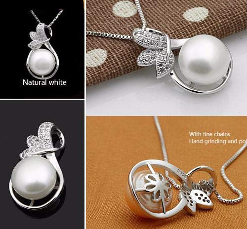 Other - قلادة فضة 925 مع حلية لؤلؤ متدلية لون ابيض طبيعي، للأنثى