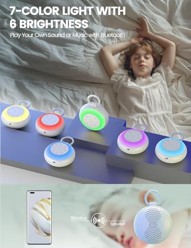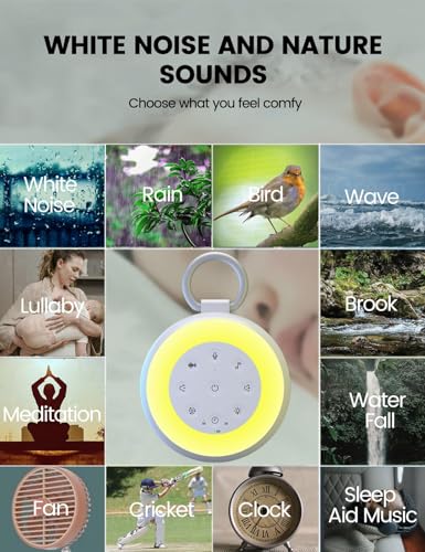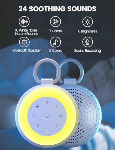INTLLAB - آلة ضوضاء بيضاء مع تسجيل للأطفال والبالغين - آلة صوت محمولة ومكبر صوت بلوتوث، 24 صوت مهدئ، إضاءة ليلية، إلغاء الضوضاء للمكتب والنوم والمنزل والسفر