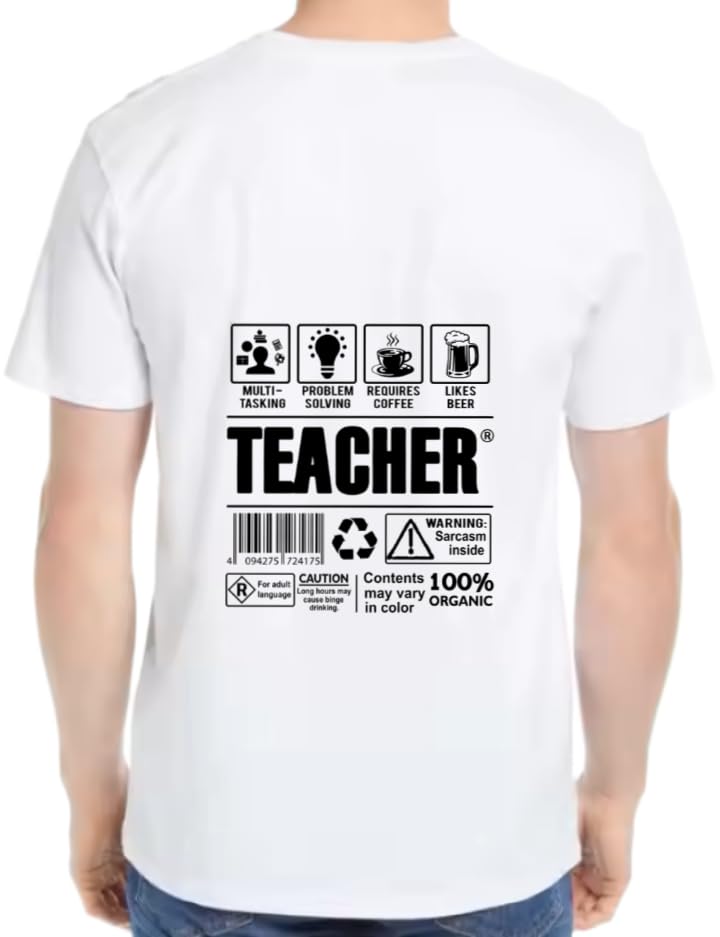 Generic - white oversize Youth T-SHIRT back art over size TEXT job work 1 teacher