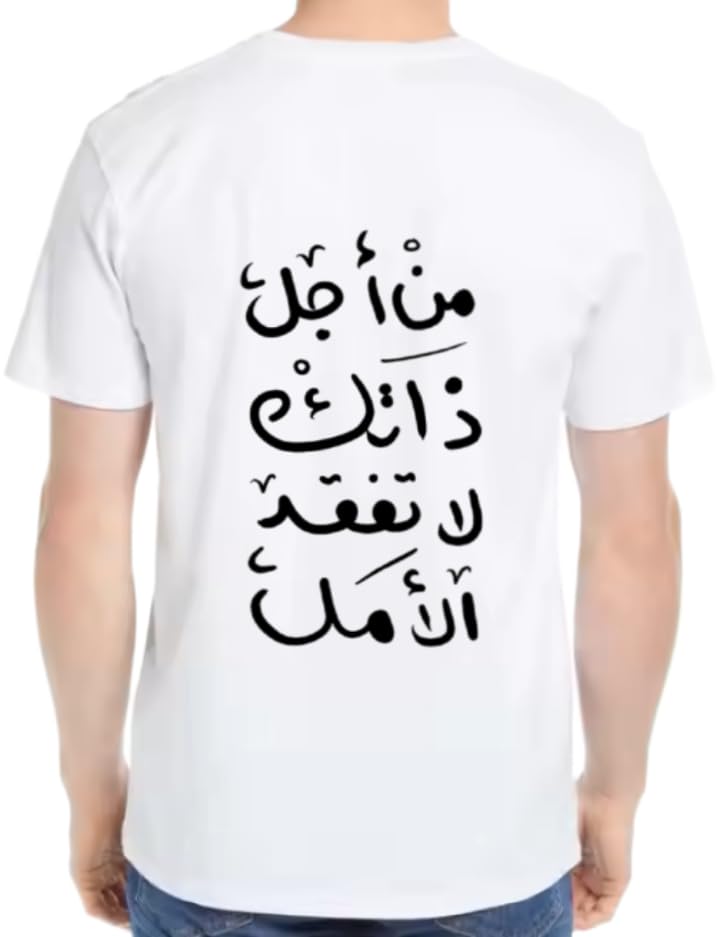 Generic - تي شيرت ابيض كبير الحجم للشباب بطباعة فنية خلفية مقاس كبير 31 من اجل ذاتك لا تفقد الامل