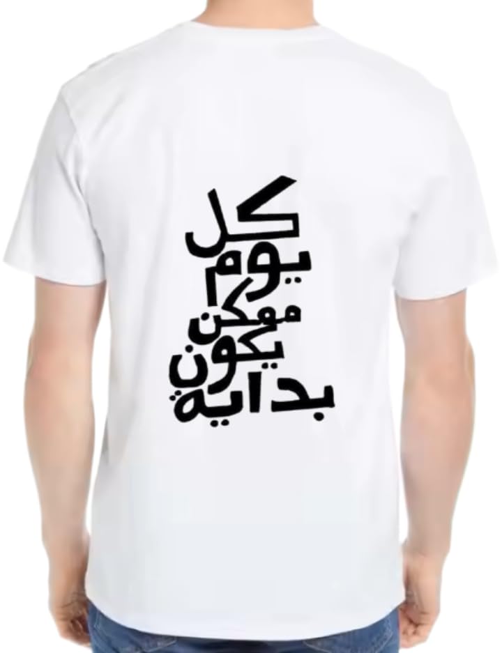 Generic - تي شيرت ابيض كبير الحجم للشباب بطباعة فنية خلفية مقاس كبير 48 كل يوم ممكن بدايه