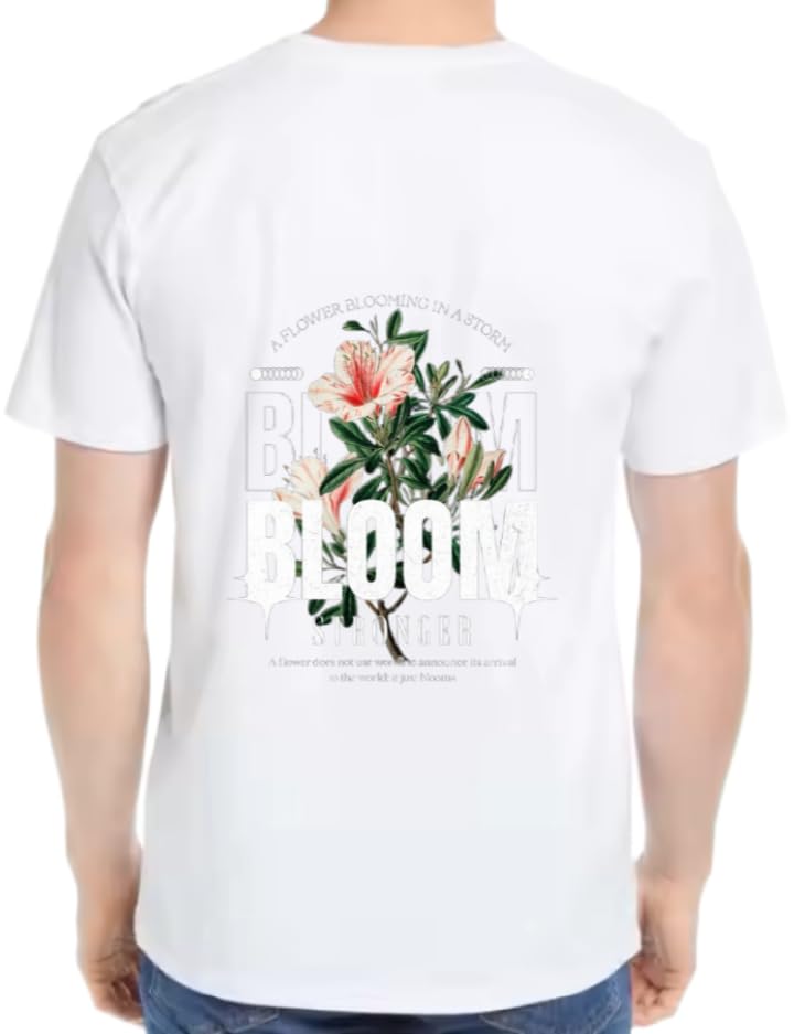 Generic - تي شيرت ابيض كبير الحجم للشباب مطبوع عليه صورة فنية خلفية مقاس كبير 64 زهرة بلوم