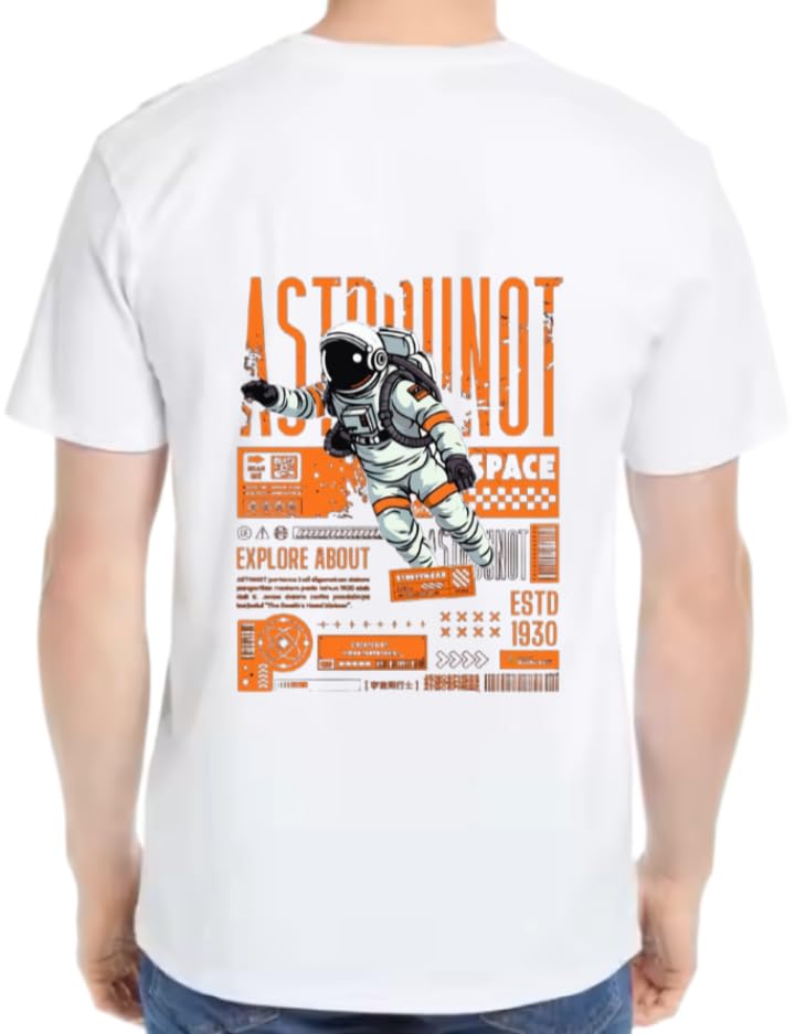 Generic - تي شيرت ابيض كبير الحجم للشباب مطبوع عليه صورة فنية خلفية مقاس كبير 69 astrunot