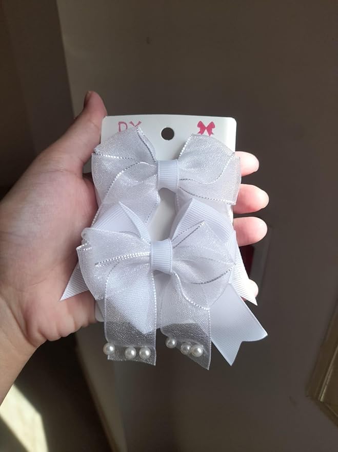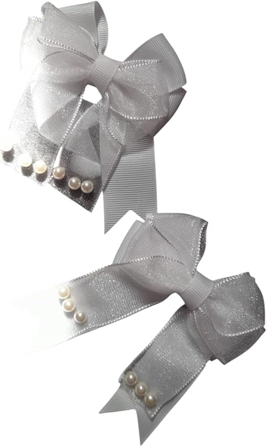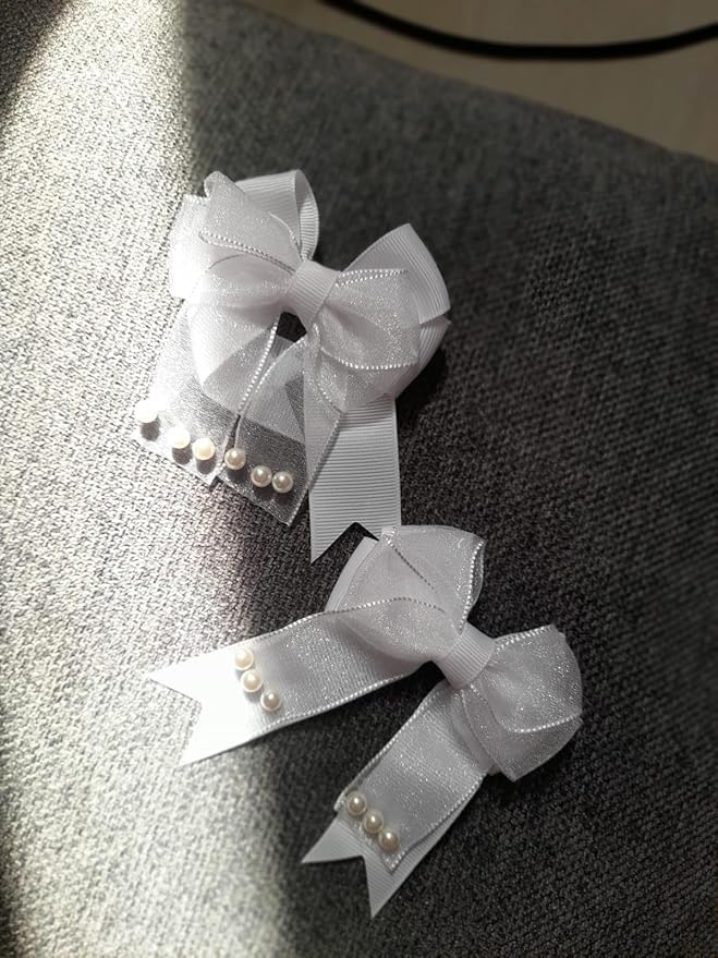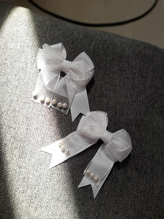 - تصميم أنيق: مجموعة من 2 فيونكة شريطية بيضاء لامعة مزينة بلمسات من اللؤلؤ الرقيق مثالية للمناسبات الخاصة والارتداء اليومي.